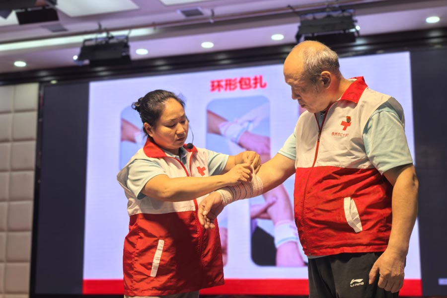 為確保培訓(xùn)質(zhì)量,本次活動特邀株洲市紅十字會“中國紅十字總會資深高級救護培訓(xùn)師”周顏與吳新華聯(lián)袂授課。其中,周顏老師擁有9年國家級急救培訓(xùn)經(jīng)驗,累計培育合格救護員超2萬人;吳新華老師專注急救領(lǐng)域8年,尤其在CPR(心肺復(fù)蘇)+AED(自動體外除顫器)專項培訓(xùn)方面具備豐富實操經(jīng)驗。兩位專家采用理論講解與模擬實操相結(jié)合的方式,系統(tǒng)傳授了創(chuàng)傷救護關(guān)鍵技術(shù)與生命救援核心技能,內(nèi)容涵蓋創(chuàng)傷止血、包扎固定、骨折搬運及燒燙傷應(yīng)急處理等實用技法,以及心搏驟??焖僮R別、高質(zhì)量心肺復(fù)蘇規(guī)范操作、自動體外除顫器使用及氣道異物梗阻海姆立克急救法等關(guān)乎生命救援的重要技能。