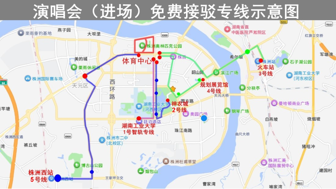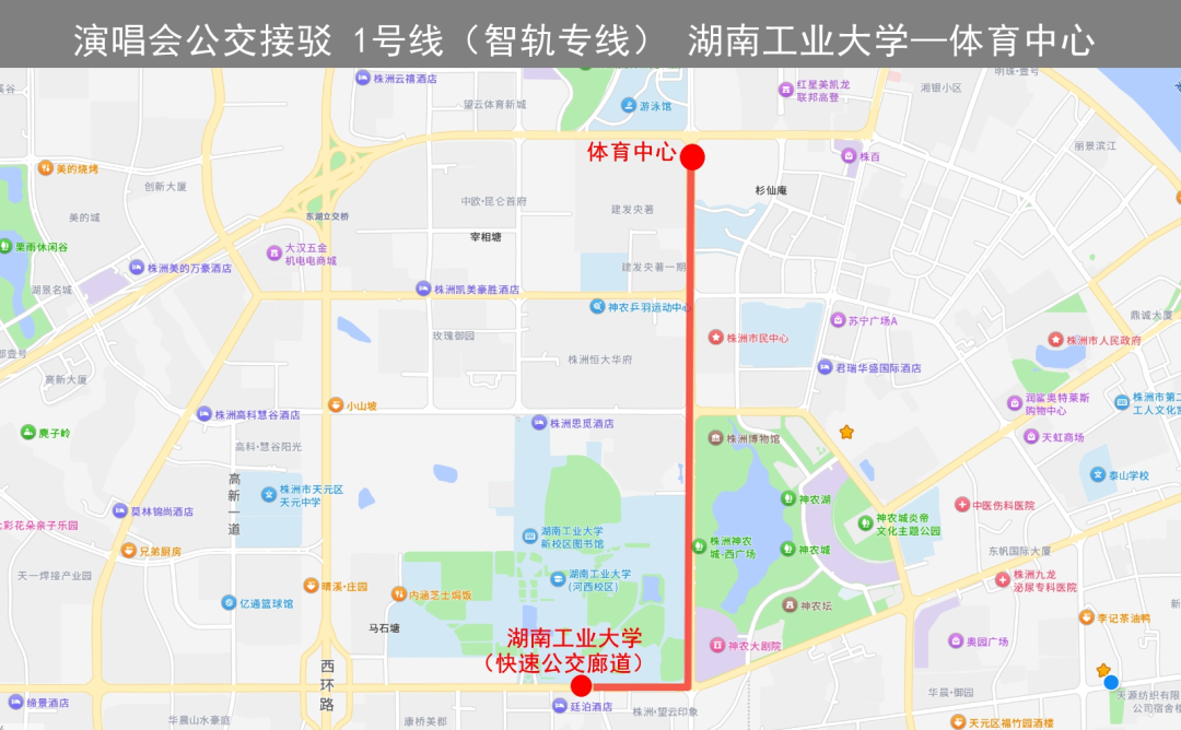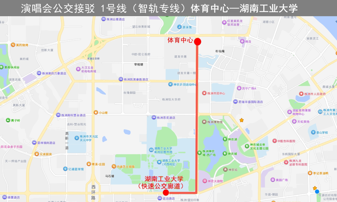 行駛線路:湖南工業(yè)大學(xué)站(快速公交廊道)→神農(nóng)大道→體育中心(直達(dá),中途不??可舷驴停?br>