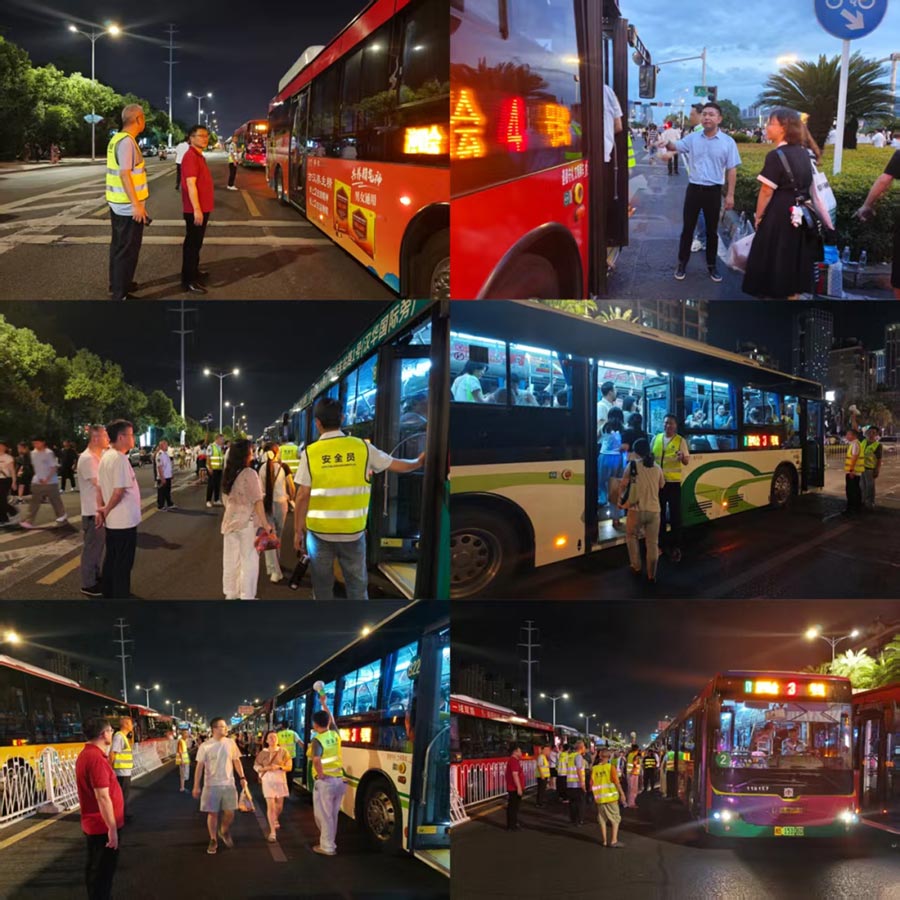 集團黨委書記、董事長賈先才,黨委副書記、總經理譚劍平,副總經理周建強親臨一線,現(xiàn)場督導并慰問參加接駁駕駛員和值守的工作人員。巴士公司領導靠前指揮,各部門負責人深入一線,督導運營、安保及乘客引導等環(huán)節(jié)落實到位?,F(xiàn)場設置多個調度點與引導崗,配備引導牌、喇叭、安全哨等工具,確??土饔行蚴枭?。后勤保障組及時供應晚餐及物資,全程跟進宣傳素材采集和輿情監(jiān)測,多項舉措協(xié)同保障接駁任務高效完成。