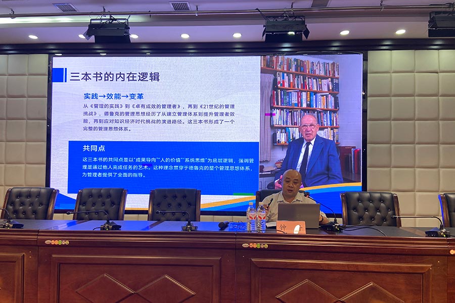 現(xiàn)場,鐘丹圍繞德魯克三大經(jīng)典著作,深入解讀其管理思想的核心價值、時代意義與演進邏輯,幫助參訓(xùn)人員全面深刻地認知德魯克管理思想體系。在核心思想解析環(huán)節(jié),他巧妙地將德魯克五大核心思想與公交營運場景相結(jié)合,讓抽象理論變得通俗易懂。同時,他還結(jié)合多地公交企業(yè)典型案例,生動展現(xiàn)管理思想在公交行業(yè)中形成的實踐成果,為參訓(xùn)人員提供了可借鑒、可復(fù)制的經(jīng)驗。